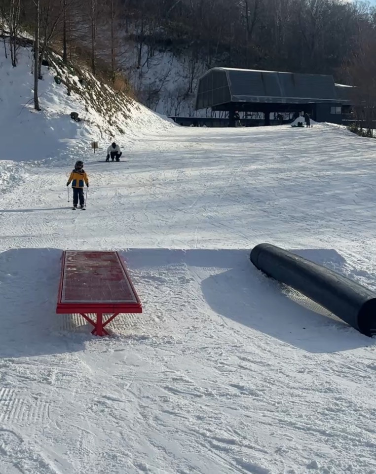 この時期から降雪機導入で3.3キロのロングコースが滑れるのに加え、ジブも2アイテム置いてあり、かなり楽しめます。