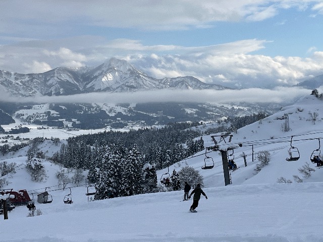 17時から21時までナイターで長峰ゲレンデ600mですが、脇雪多く楽しめました。メインの長峰第2ロマンスは16時半頃からと、夕食後の19時頃からは長蛇列でした。リフトから見える大別当ゲレンデのチャンピオンコースは週末用に温存されていて羨ましい限りです。