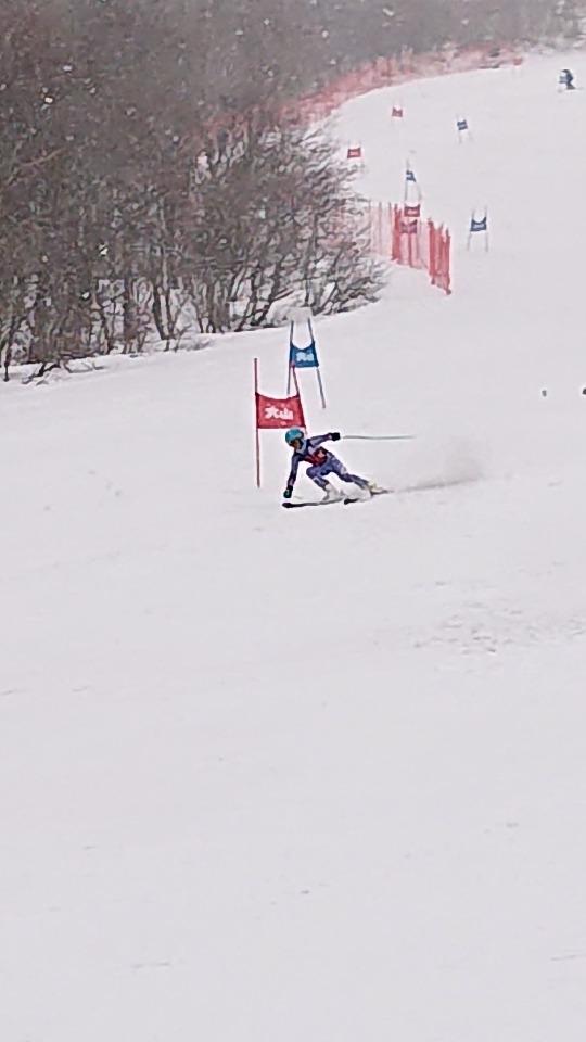 スキーヤーの滑走技能を競うスキー大会のため大山国際エリアの一部のコースがクローズされています。小学生から社会人のスキー連盟の団体、自衛隊のスキー部隊?まで参加していました。