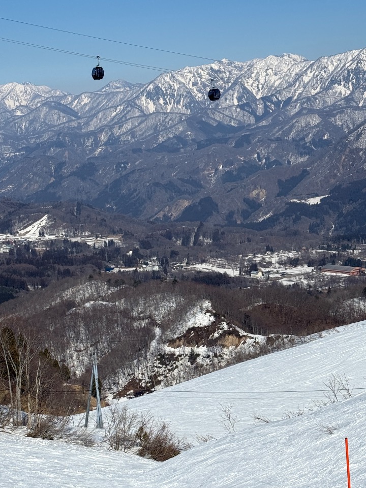 快晴で気温も上がりすっかり春の陽気でした。麓はかなり雪解けが進み土が見えてます。ゴンドラで上に行けばまだまだ雪もあり楽しめます。朝はカリカリバーンでしたが昼頃から雪も緩み、場所によってはシャバシャバになります。普通の観光客もいるので多少混んでいましたがトップシーズンに比べれば全然気にならない程度です。