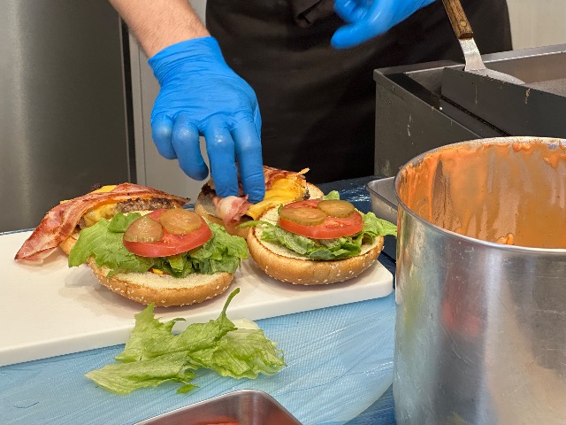 デコでは今シーズンからハンバーガーの販売が始まりまっています。昨シーズンまでクレープ屋さんのあった場所です。一つ一つ目の前で丁寧に焼き上げてくれるので少し時間を要して、週末のお昼時には長蛇の列となりますが味は間違いないです。シングルのチーズバーガーで1,600円と一瞬割高に感じますが300mlカップのソフトドリンク付きなのでスキー場価格的には納得感ある値段です。