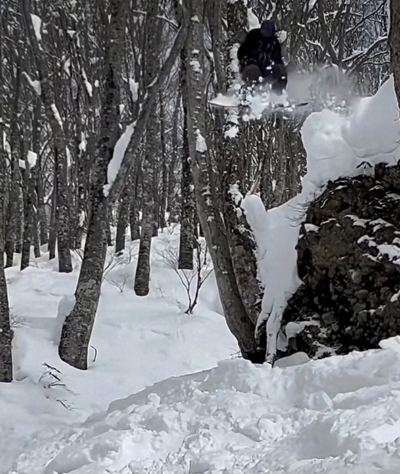 スキー場内は圧雪の上を歩くとキュッキュッと鳴りコンディション良好でした。ツリーランコース(コース内)では色々な場所にマッシュがあり、気持ちよく飛べました!