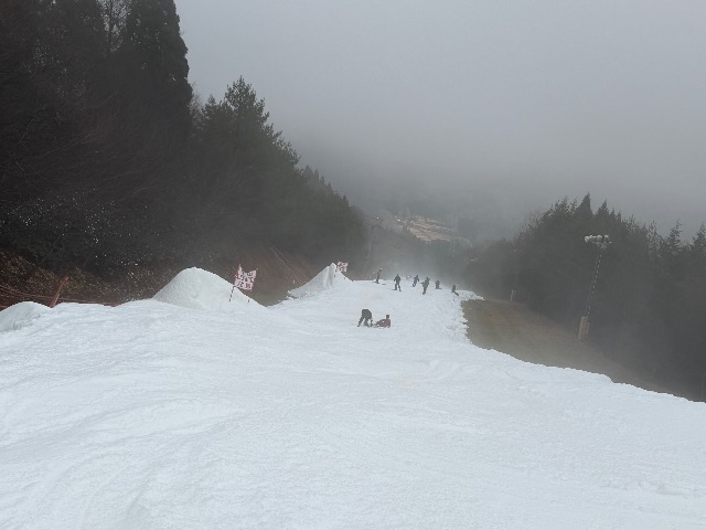 滑走可能な範囲は限られており、狭い路のような中、中・上級コースは人々で混み合っており、ここでハイスピードは出せそうにない。もう少し雪が降ればロングカービングができるようになるだろうけど、寒波襲来を期待したいですね。